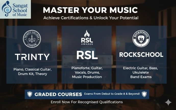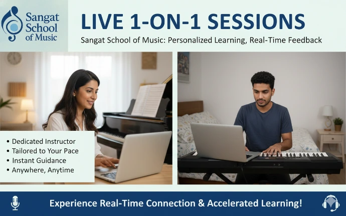 There are many options available for online music classes. Trial online classes are necessarily the best option to have a better understanding before joining any class, and we at Sangat provide you with trial music classes free of cost. This way, you'll know that the instructors have extensive knowledge in the subject. At Sangat music classes you can also get music certification courses which are often more structured and synchronized. There are many reasons to enroll in Sangat Music classes.